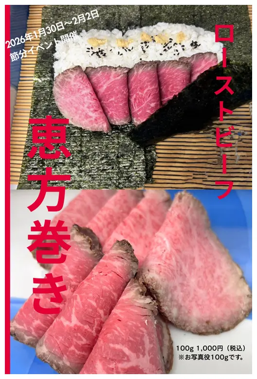 Sat, Jan 31, 2026「節分限定!恵方巻にぴったりのローストビーフ切れ端、販売します」~呉のお肉屋さん…「節分限定!恵方巻にぴったりのローストビーフ切れ端、販売しま…Read More