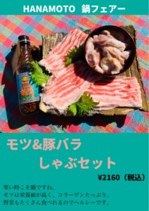 こんにちは、花本商店です。 創業70年の花本商店は、ローストビーフをはじめとし、ハンバーグや焼豚、 自家製万能ダレ、詰め合わせセットなどを通販サイトで販売しております。 その他、大っきな大きなロールキャベツや、餃子、ホルモンミックス、 すじ煮込み等も地方発送しております。 こちらは、サイト内では販売しておりませんので直接お電話やメールで お問い合わせください。 まだまだ、寒いですね〜 寒い季節は簡単にできる鍋が多くなります。 仕事で晩御飯を作る時間がない時や、冷蔵庫に余った野菜がある時は すぐ鍋になります! 実家の花本さん家は、冬は鍋率が高いです。 一人暮らしの私も一人鍋やりがちです。 先日、友達と「鍋に必ず入れる野菜は何?」ってゆう話題になりました。 各家庭によってそれぞれなので面白いですね。 鍋の味によりますが、菜の花や蓮根、モヤシ、 大根や人参をピーラーで切って 薄く長くして丸めて見映えよくしたりする方もいます。 私も試しましたが、普通の鍋が可愛く見えました! 私的に菜の花がとても美味しかったです! 花本商店、鍋フェアします! 2月はこちら↓↓「モツ&豚バラしゃぶセット」 約2名さま分です。 モツはコラーゲンたっぷり、野菜もたくさん食べれて体にもいいです! モツを家でやるは手間と思いがちですが、お湯で一度洗うだけで あとはお好みの大きさにカットするだけです! お家でもつ鍋をお楽しみください!