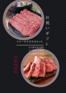 花本商店では、ステーキとすき焼きが一緒になったスペシャルな組み合わせのお祝いギフトをご用意しました。