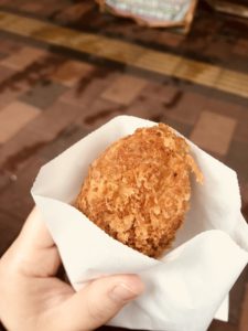 潰しすぎてたまに筋肉痛になったりも、、、、、 この時だけは時間との勝負なので、笑ってはいられないぐらい必死なママ。 ママの手作業なので大量生産はできませんがこんな感じで毎日約100個のコロッケを作っ ています。 肉じゃがコロッケは甘い味付けでどこか懐かしい味。 おやつにサクッと食べて行ってください。