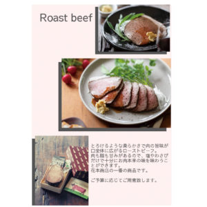 創業70年の花本商店では、ローストビーフをはじめとし、すきやきセット、ステーキ、焼肉セット、ハンバーグに焼豚などもオンラインショップで販売しております。