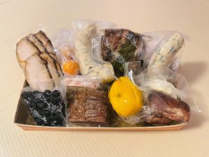 ~迎春オードブル お二人様 ¥19,800~ ・ローストビーフ(広島県産黒毛和牛 約300g) ・スペアリブ(広島県産 約150g) ・ローストポーク(広島県産もみじ豚 約150g) ・ガイヤーン(タイ風ローストチキン 広島県産) ・自家製ソーセージ(2本) ・黒豆(丹波黒豆 約200g) ・ゆず酢カブ ・手作りテリーヌ ・チーズ ・干し柿(広島県産) ・キンカン(宮崎県産) ・真盛豆(京菓子司 金谷正廣さんのお菓子) etc ~迎春オードブル お一人様 ¥8,800~ 内容は同じです。 そして、な!なんと! 急遽追加で決まりました。 「しまのぱんSouda!」さんのオリーブオイルブリオッシュを入れさせていただけることになりました。 広島で大人気のパン屋さん!!花本のお肉と一緒に食べていただけるのが嬉しいです〜 お正月まで待てないぐらいで、早くお届けしたい(笑) 牛肉、鶏肉、豚肉でお肉を存分に味わえるないようです。 地方発送もしております。