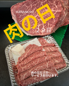 こんにちは、花本商店です。 創業70年の花本商店は、ローストビーフを始めとし、すきやきや、ステーキ、焼肉セット、手ごねハンバーグに焼豚等をオンラインでも販売します。 秋分の日をむかえ、季節は秋ですね。 四季折々を楽しめるのも日本の良さです。 季節を五感で楽しむためにも健康管理にお気をつけ下さい。 今月も肉の日がやってきます!花本商店的に、毎月29日になると 「肉!だな」 「今日はお肉食べたいな」 「焼肉にしようかな」等。 片隅にお肉のことを思い出して頂けたら嬉しいですね。 最近はお肉を買いに精肉店へ行ったり、お魚を買いに鮮魚店、お野菜を八百屋さん、果物を青果店で購入したりがなくなりましたね。 スーパーに行けばお全て手に入りますし、お手頃価格ですからね。 私たちも便利でいきます! ワクワクします♪ ただ、お肉の種類には負けません!
