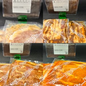 〜内容〜 【ソテーシリーズ】 *豚肉の壺タレ(花本オリジナルタレでスタミナ満点の一皿) *豚の生姜焼き(王道の味でごはんがすすむ) *豚の辛味噌(ピリッと刺激がクセになる) *豚の味噌だれ(濃厚味噌ダレ仕込み) 各 約110g 【お肉屋さんのカレー】1パック 【焼豚ブロック】約150g 【タイ風焼鳥のガイヤーン】1枚 約200g ご自身のために、ご家族のため、大切なかたのためにぜひどうぞ!
