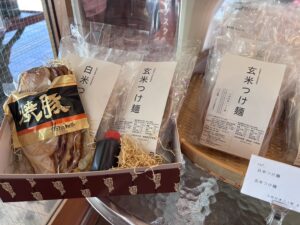 広島の商品も魅力的です。 お客様にもお届けしたいと思い店頭で販売をはじめました。 その他、お味噌や出汁、こんにゃくにお豆も置いてます。 体にいいものなら皆さんにお伝えしたい精神。 その他、厳選したハムやチーズも取り揃えております。
