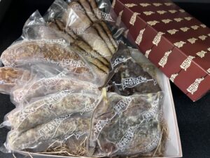 こんにちは、花本商店です。 創業70年の花本商店では、ローストビーフ、すきやき、ステーキ、手ごねハンバーグ、自家製生ソーセージ、焼豚など、こだわりのお肉料理をオンラインでも販売しております。 先週開催された年に一度の「えびすこう祭り」は、急遽2日間の開催となりましたが、雨の中にもかかわらず多くのお客様にご来店いただき、誠にありがとうございました。 一番人気は「加工品の詰め合わせ」。続いて好評だったのが「牛すきやき鍋セット」でした。 鍋セットをご購入いただいた方には、 「お好きなお野菜をこちらからどうぞ!」とご案内したところ、 「八百屋さんに行かなくて済むのが助かる!」 「最近は野菜も高級だから嬉しい!」と、 たくさんの喜びの声をいただきました。