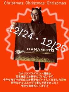 こんにちは、花本商店です。 創業70年の花本商店では、ローストビーフ、すき焼き、ステーキ、手ごねハンバーグ、自家製生ソーセージ、焼豚など、こだわりのお肉料理をオンラインでも販売しております。 クリスマスに向けて毎日焼いてました!今年も花本商店のチキンにたくさんのご注文をいただき、連日オンラインショップは大賑わいです。 なんと昨年の倍のご予約を頂戴しております。 誠にありがとうございます! 大切なひとときを、焼きたてのチキンでお楽しみください。 先日は幼稚園様よりクリスマス会のお弁当をご注文いただきました。