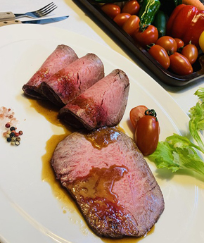とろけるような柔らかさで肉の旨味が口全体に広がります。肉も脂も甘みがあるので、塩やわさびだけで十分にお肉本来の味を味わうことができます。花本商店の一番の商品です。カットして盛り付けるだけで食卓が一気に華やかになる見栄えの良さも魅力的。お中元、お歳暮、ギフトなど贈答品として、またおもてなしや特別な日のメインにもおすすめです。