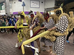その役割は、竹の棒を持って祭りの時に現れる神様の警護。