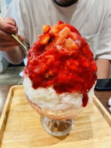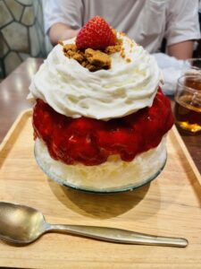 1枚目のかき氷は、裏メニューの「ストロベリーチーズケーキ」
