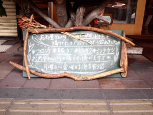 外に置かれている椅子やテーブル、花本商店台所の外にある台や タレを置いている小さな棚などなどは手作りなのです!!!!
